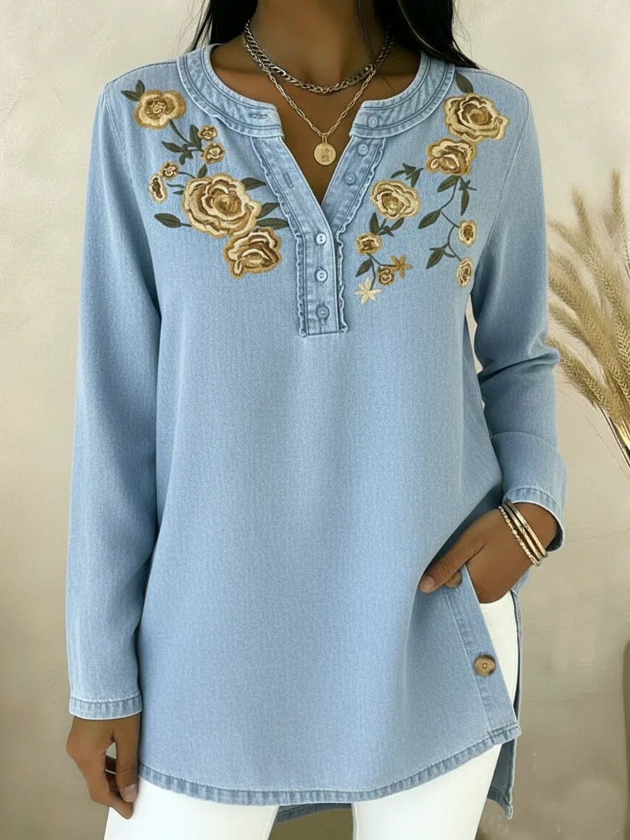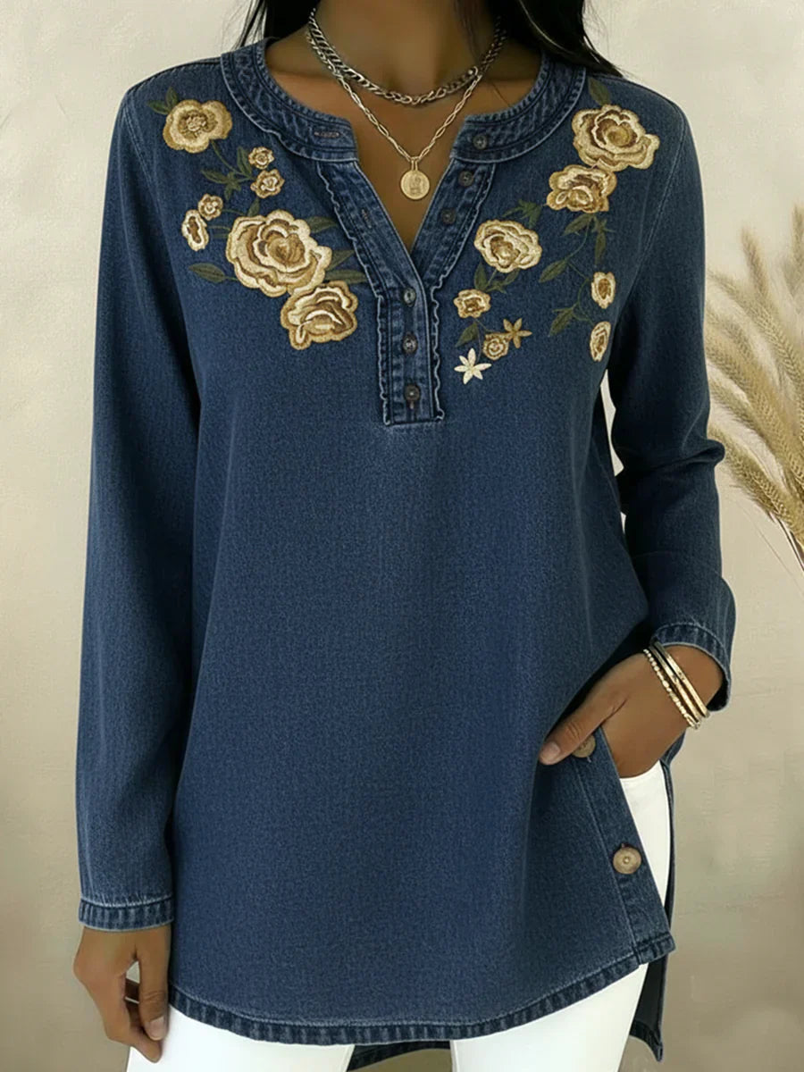 Seyla™ – Denimskjorte med blomstermønster